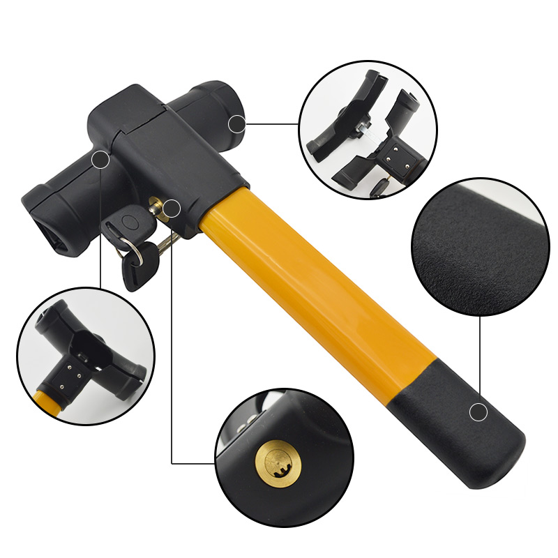 - Locking: Insert the locking mechanism and turn the key to secure it in place. The T-bar design prevents the steering wheel from being turned freely.