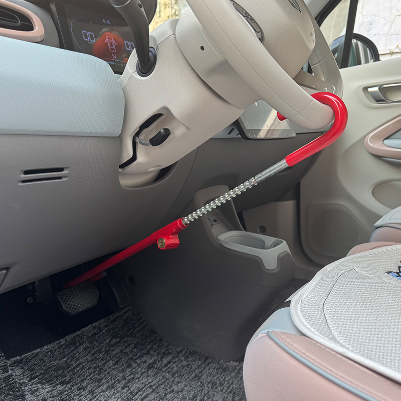 The ANKE Steering Wheel Lock is designed for ease of use and maximum security. To operate, simply extend the twin bars to fit across the diameter of your steering wheel. Insert the key and lock it in place. The double-hook design ensures a firm grip on the steering wheel, making it extremely difficult for thieves to remove without the key. It acts as a strong visual deterrent, discouraging potential theft attempts. Always ensure the lock is fully engaged and the key is removed and stored safely after use.