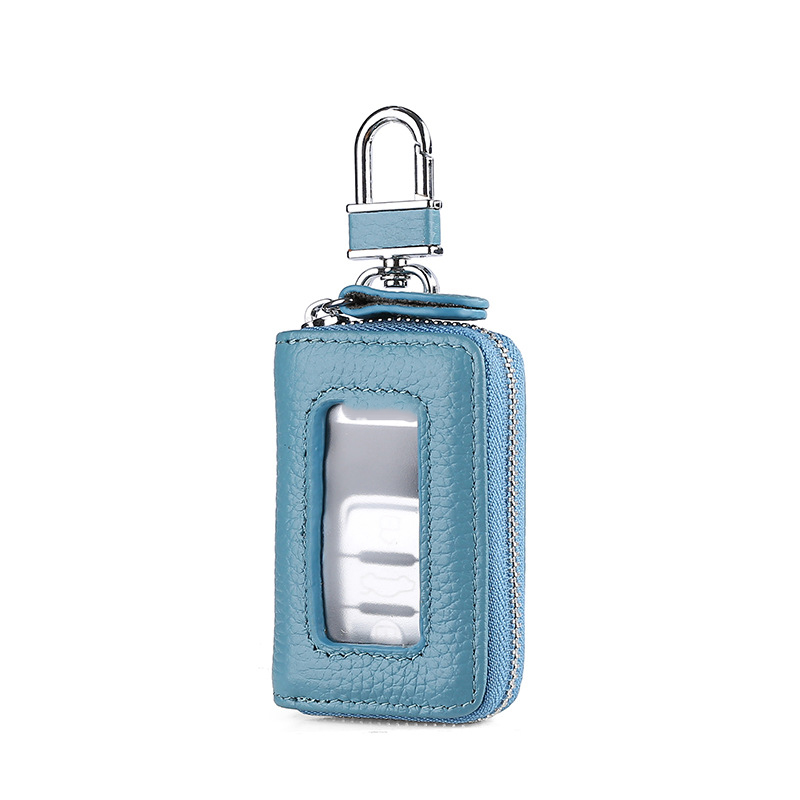 Based on its features, potential reviews might highlight the key case's durability due to its cowhide material and robust construction. Users may also praise its waterproof feature, which protects keys from accidental spills or rain. The variety of colors available and the option for logo customization are likely to be positively noted. Some reviews might mention the compact size and lightweight design as major advantages for everyday carry.