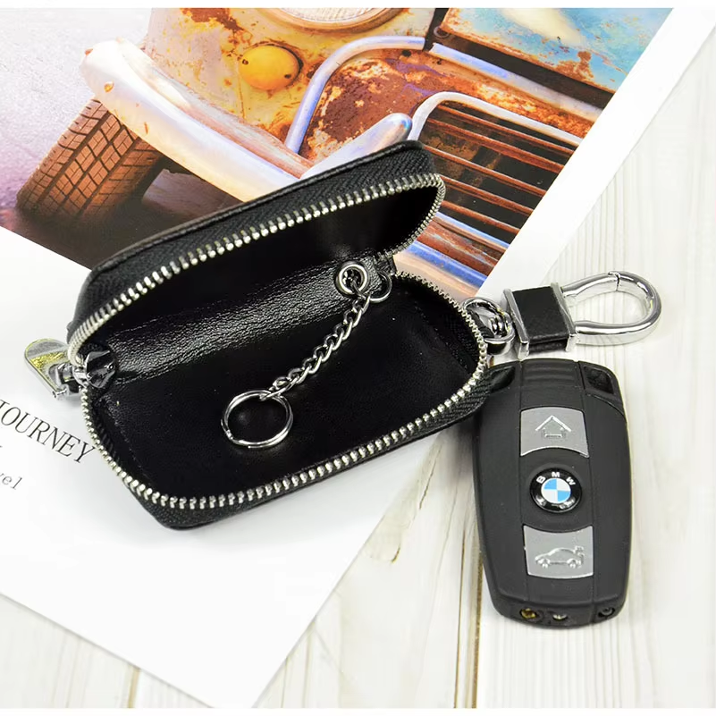This genuine leather keychain pouch is designed as a fashionable and practical solution for organizing your keys, especially car keys. It serves as a protective cover and a stylish accessory for daily use. The product is made from high-quality genuine leather, ensuring durability and a premium feel. It is available in a standard size of 5*8.5cm and comes with a filler OPP bag for protection. Custom logos are accepted, making it an excellent option for promotional gifts or personalized items.