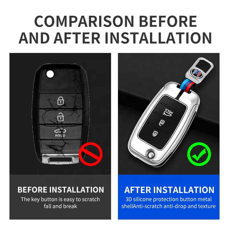 This high-quality car key case is designed to provide superior protection and style for your Kia car key. It combines the durability of hard metal with the flexibility and comfort of soft silicone, offering a perfect blend of functionality and aesthetics. The 3-button folding bag design ensures easy access to all key functions while keeping the remote secure.