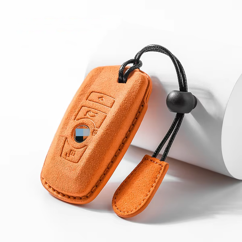 This is a premium artificial suede leather car key case designed specifically for BMW remote keys. It serves as a protective skin to safeguard your original key fob from scratches, dust, and daily wear and tear. The product features a sleek design, available in multiple colors, and offers the option for custom logos, making it both a practical accessory and a personalized style statement.