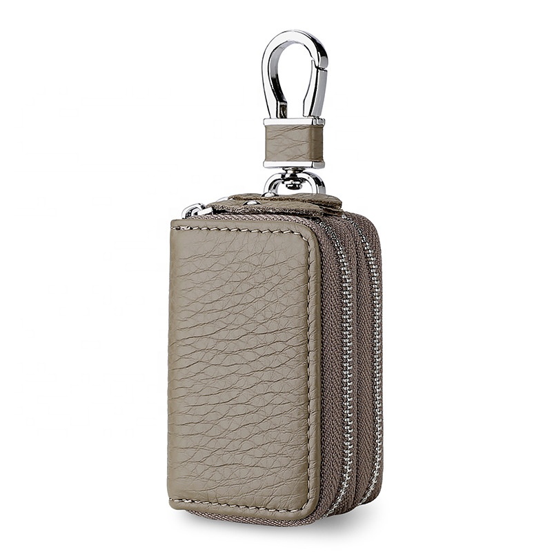 Top Layer Cowhide Double Zipper Car Key Bag