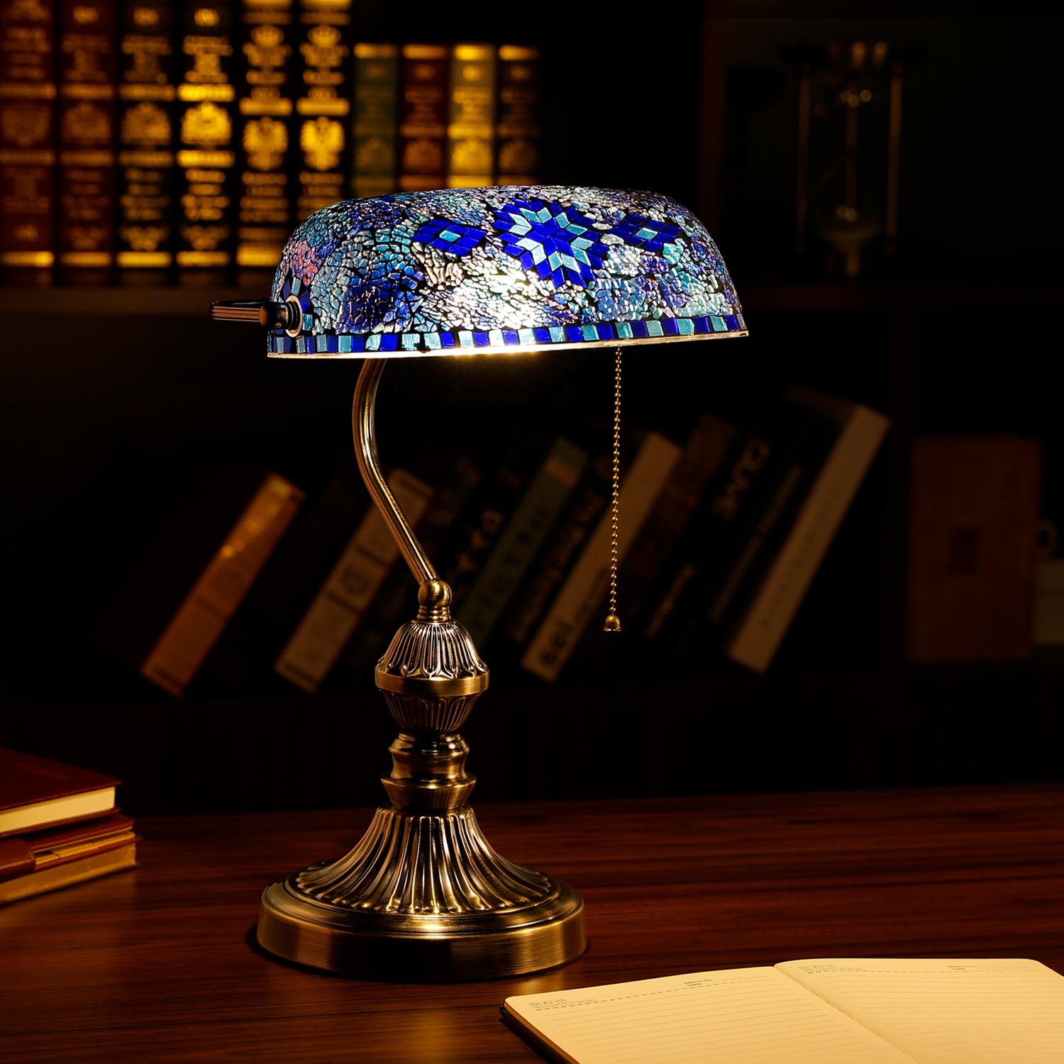 Marrakech Tiffany Mosaic Style Stained Glass Bankers Desk Lamp