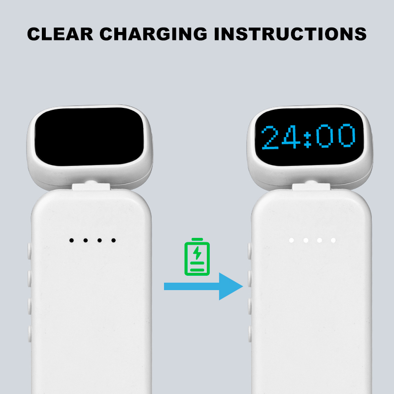 - Charging: Connect the included USB cable to a standard 5V power adapter (like a phone charger) or a computer's USB port. The 4 indicator lights will show the charging progress.