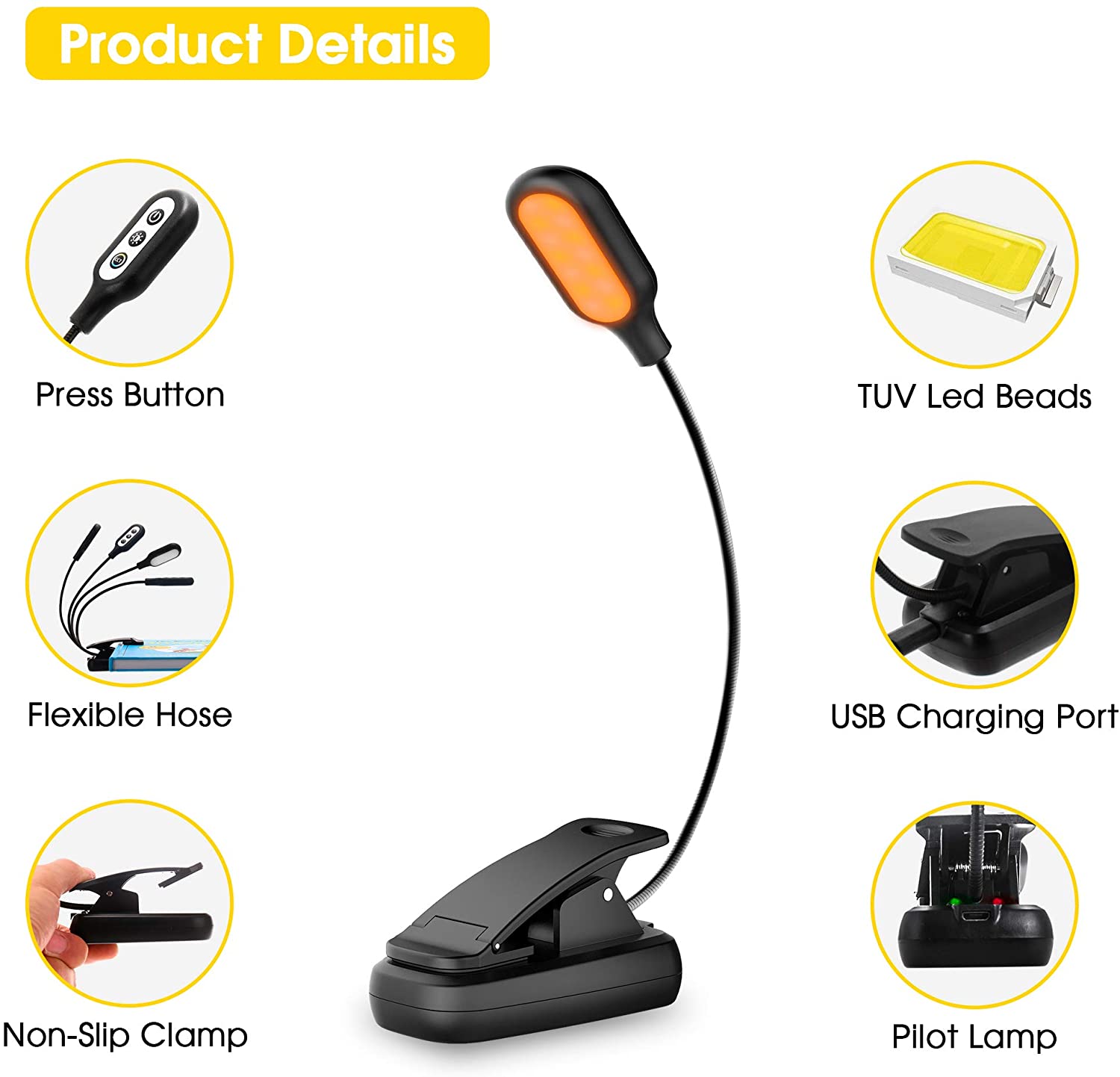 - Positioning: Adjust the 360° flexible gooseneck to direct the light where needed. Use the sturdy clip to attach it to a book, desk, or headboard.