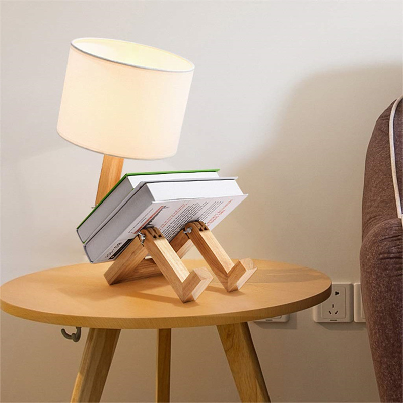 Yovee YW-05R: Modern Wooden Foldable Desk Lamp with Fabric Shade