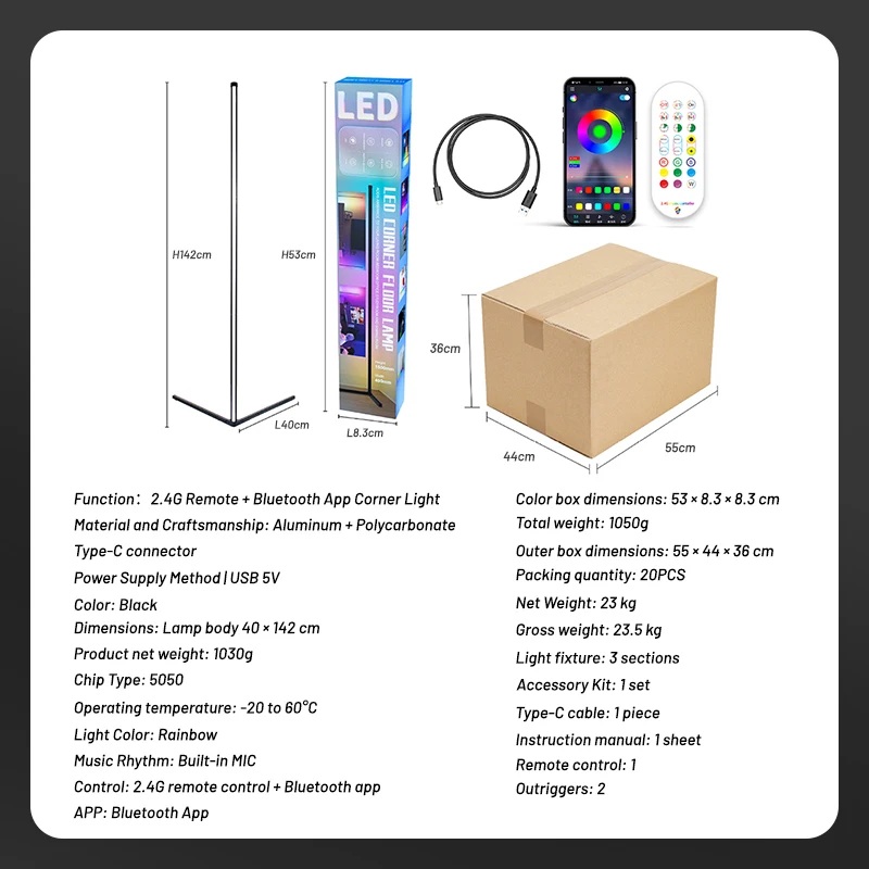 This floor lamp is ideal for creating ambient lighting in living rooms, bedrooms, and home offices. It can be used as a task light for reading or as an accent light to highlight room decor. The RGB feature allows it to sync with music or be set to a specific color for parties, relaxation, or mood lighting. The remote control makes it easy to switch between modes without getting up.