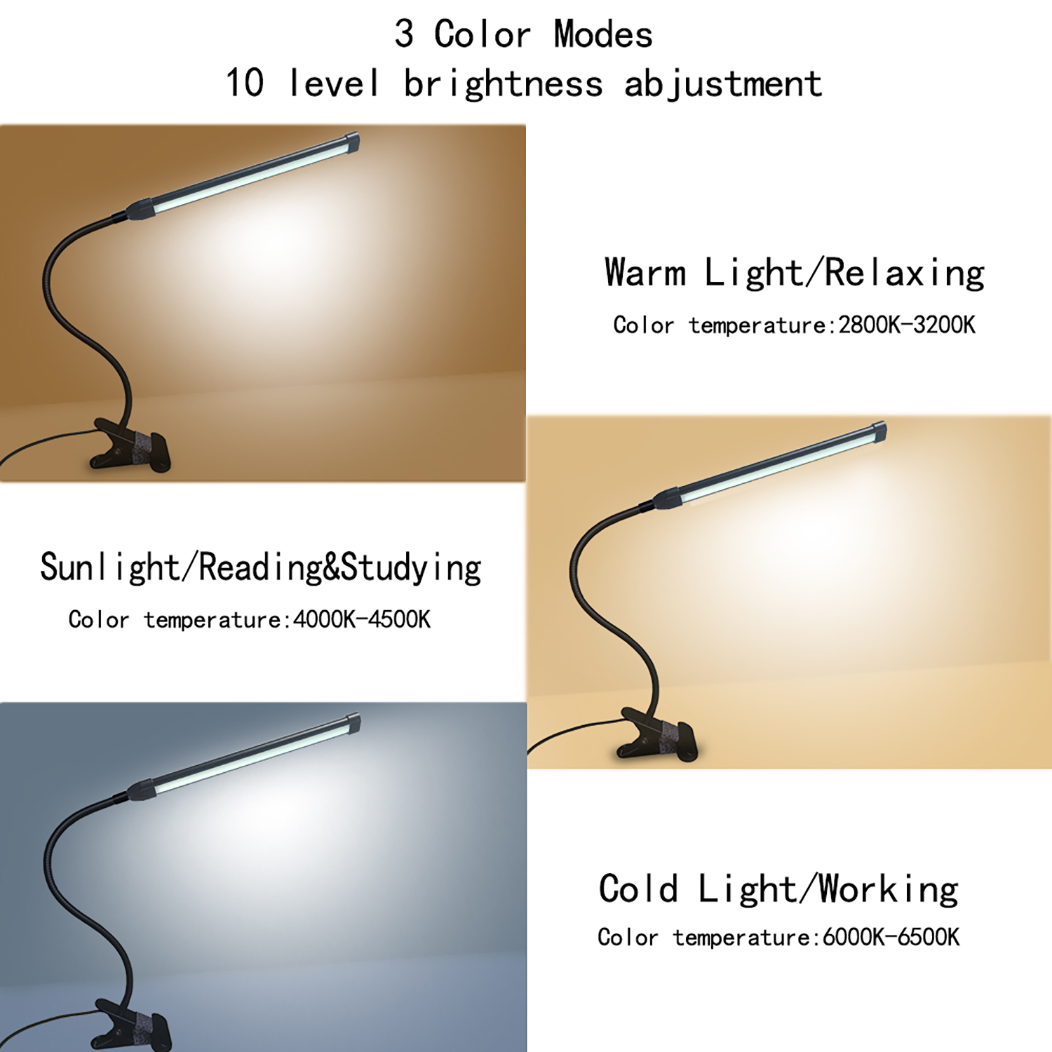 - USB clamp desk lamp