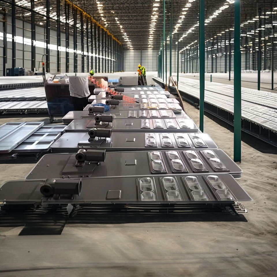 Equipped with an intelligent controller and a built-in light sensor, this street light operates autonomously. It automatically turns on at dusk and off at dawn, eliminating the need for manual intervention. The "smart" feature may also include motion sensor capabilities (inferred from similar models), where brightness adjusts based on detected movement to conserve energy.