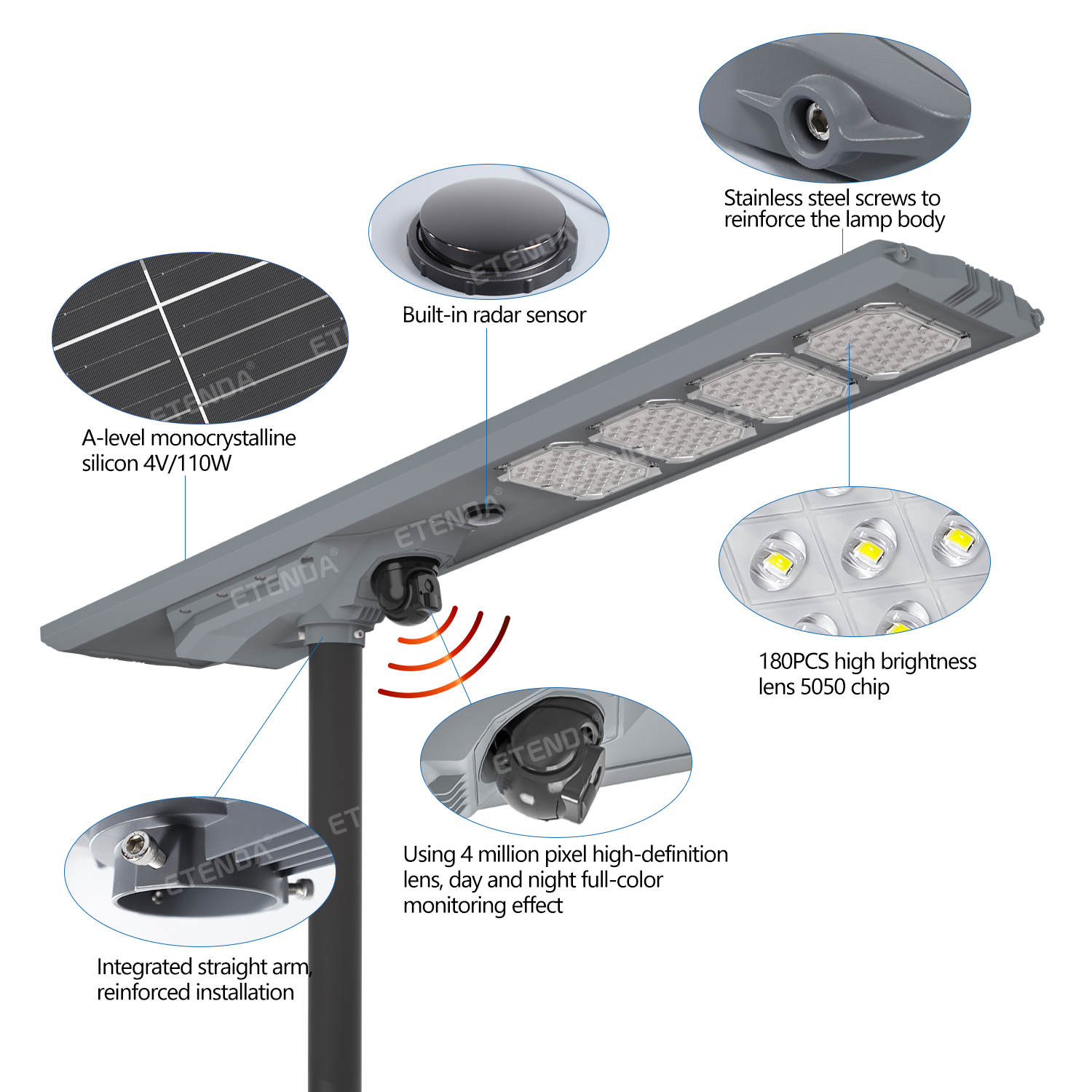 ETENDA ETD-AI800W 800W 4G WiFi Smart Solar Street Light with Motion Sensor CCTV Camera