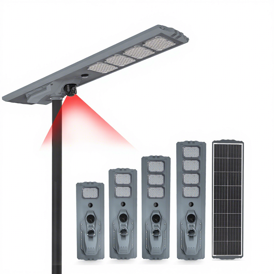 The ETENDA MJ-SSO200 All-in-One Solar Street Light is a high-efficiency, multi-functional outdoor lighting solution designed for modern urban and rural infrastructure. Combining advanced monocrystalline silicon solar panels, a long-life LiFePO4 battery, and an integrated security camera, this light offers a sustainable and intelligent approach to public and private area illumination. With power options ranging from 100W to 400W, it is engineered to provide reliable, energy-independent lighting for roads, gardens, squares, and highways, while the built-in camera adds a layer of security monitoring.