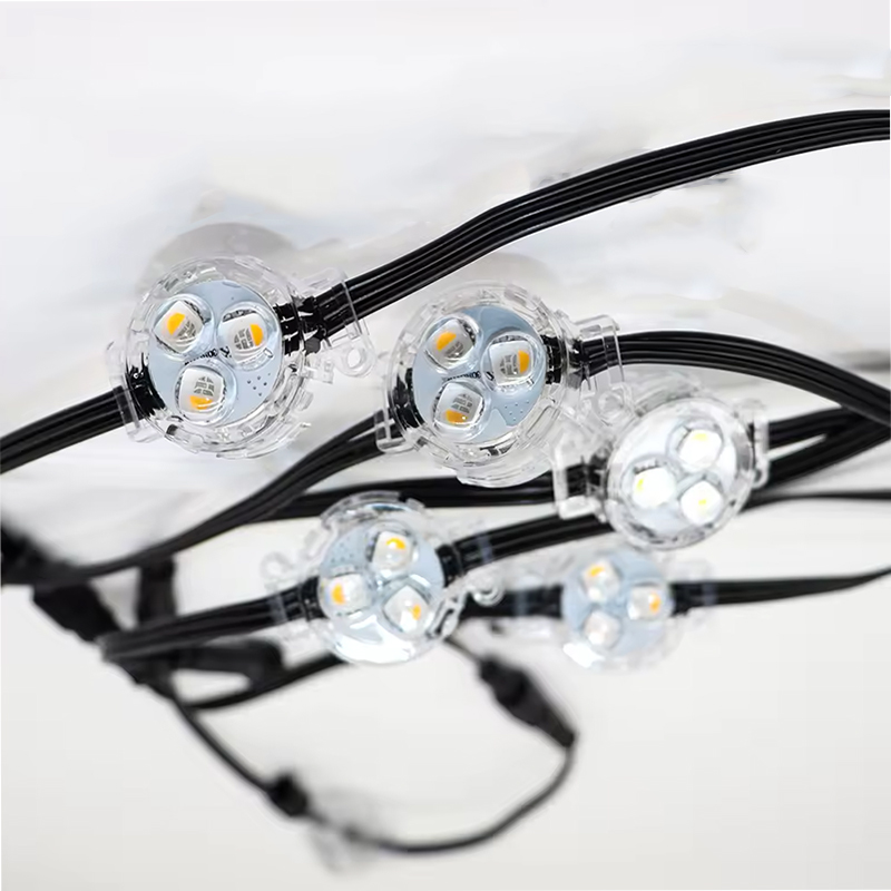 The CHJ-IC30RGB is a high-performance, permanent outdoor LED point light engineered for professional architectural and landscape lighting. Utilizing advanced WS2811 addressable technology, it offers unparalleled control over each individual pixel, enabling dynamic color-changing effects, patterns, and animations. With an IP68 waterproof rating and robust construction, it is designed to withstand harsh outdoor environments, making it ideal for year-round use on building eaves, facades, and as premium Christmas lighting.