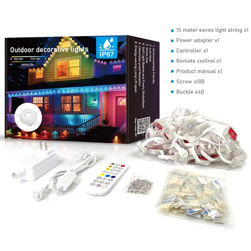 Smart IP67 Permanent Light Waterproof Outdoor Christmas Lights Permanent Pixel LED Eaves Lights for Roof Garden Decoration