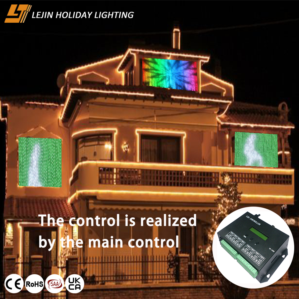 This Customized 7*2 M LED Rgb Smart Curtain Light is designed for professional holiday and event decoration. Manufactured by Wuxi Lejin Electronic & Electrical Co., Ltd., a company with over 20 years of experience in the lighting industry , this product combines vibrant RGB lighting with smart control technology. It features an IP65 waterproof rating, making it suitable for both indoor and outdoor use, and is built with high-quality Epistar LED chips for long-lasting performance and energy efficiency .