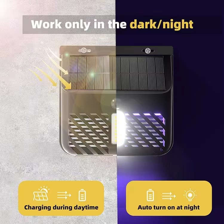 FOXHAWK WL-2401 IPX5 Waterproof LED Solar Garden UV Mosquito Killer Light Smart Sensor Outdoor Wall Lamp