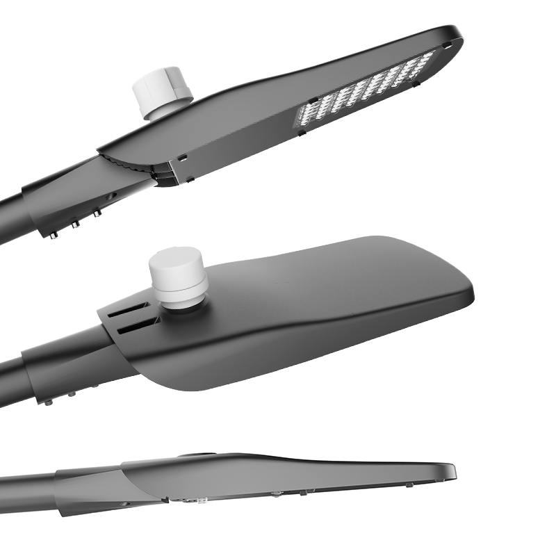 This LED street light is suitable for pole mounting on various outdoor structures. The installation height should be determined based on the required illumination area and uniformity. It is recommended to consult lighting design software (like Dialux Evo) or a professional engineer for optimal layout planning. The fixture is designed for easy installation with a tool-less adjustable bracket, allowing for precise aiming of the light beam.
