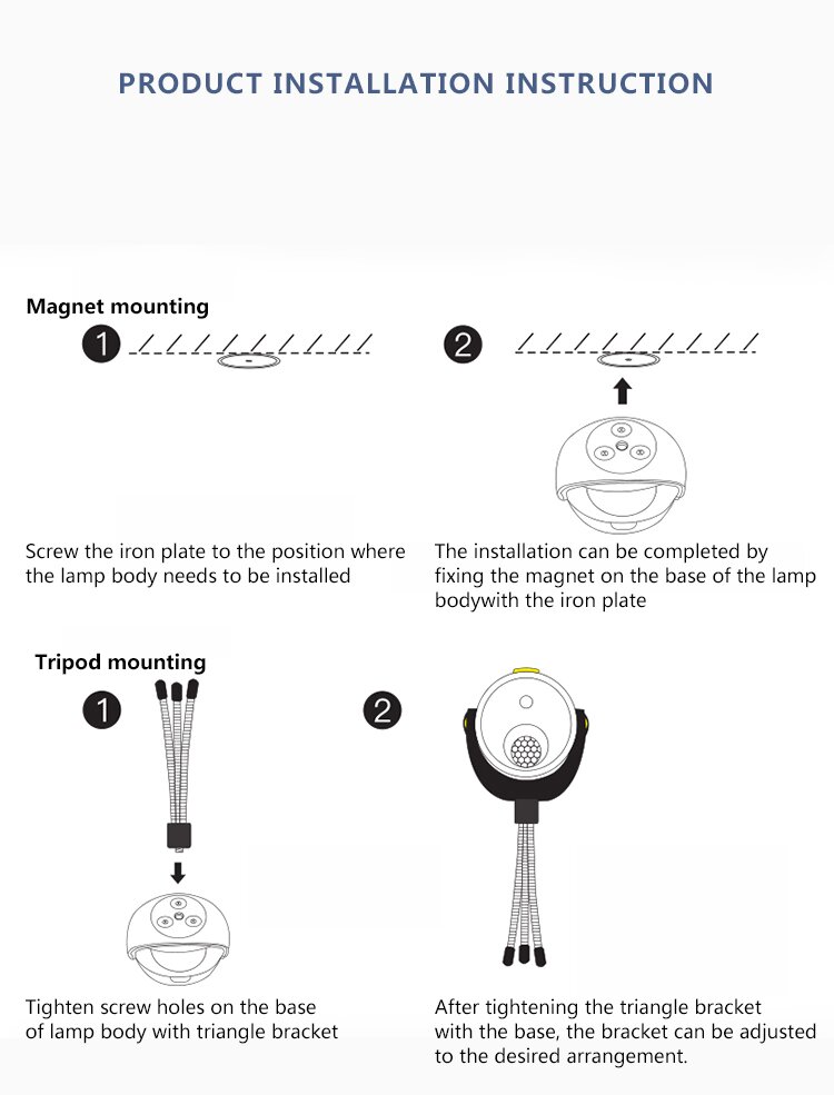 The Tuodi TDL-6102 is a versatile, energy-efficient motion sensor light designed for both indoor and outdoor security and convenience. Featuring a flexible tripod base and a 360-degree rotating head, it allows for precise positioning in various scenarios, from garden pathways to warehouse corners. With its IP65 waterproof rating and durable PC construction, it is built to withstand harsh weather conditions while providing reliable illumination upon detecting movement.