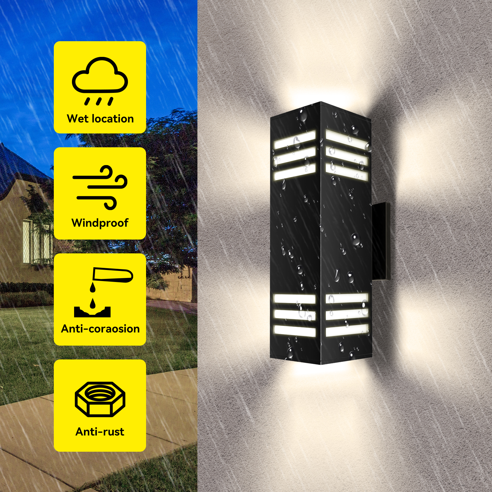 This product is an ETL-certified, modern-style outdoor wall lamp designed for home porch, garden, yard, and exterior wall applications. It features a smart motion sensor with dusk-to-dawn functionality, ensuring energy efficiency and convenience by automatically turning on at night or when motion is detected. Constructed with a durable aluminum die-casting body and tempered glass diffuser, it boasts an IP54 rating for weather resistance, making it suitable for outdoor use in various conditions. The lamp is designed for surface wall mounting and is compatible with AC 100-240V input voltage.