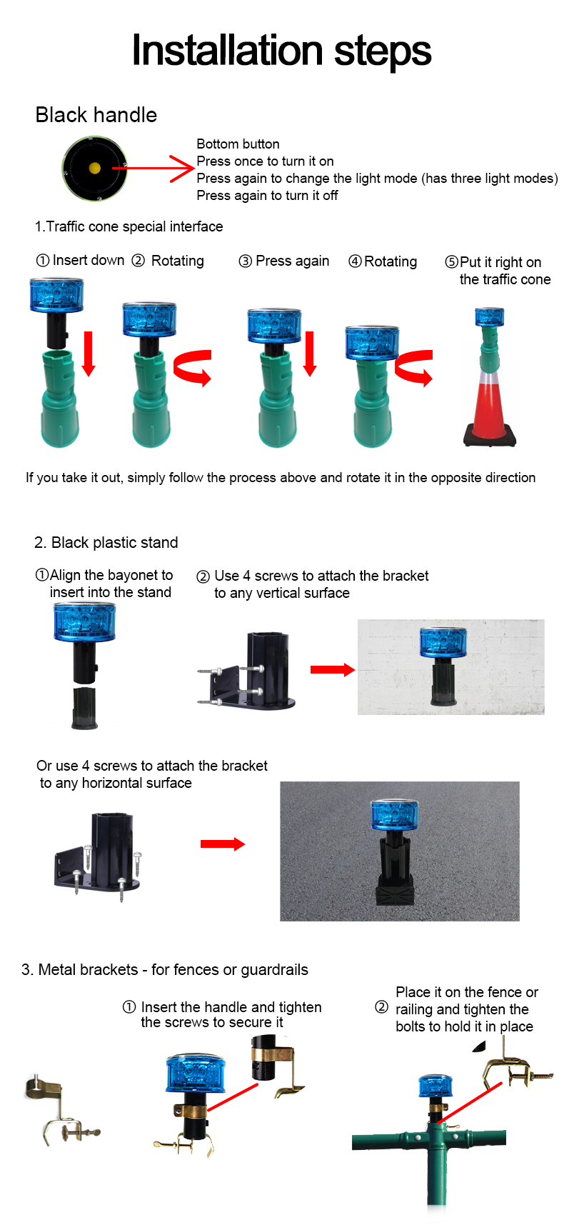Battery Care: In prolonged cloudy weather, manually charge the battery if the light dims.